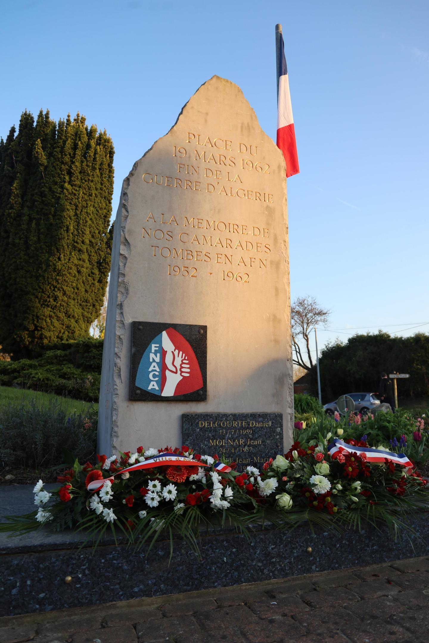 En ce 19 mars, Journée nationale du souvenir et de recueillement à la mémoire des victimes civiles et militaires de la guerre d’Algérie et des combats en Tunisie et au Maroc, notre commune se souvient avec émotion des trois Avionnais tombés pour la France : le caporal Molnar, le sous-lieutenant Delcourte et le soldat Maeght. Leur sacrifice nous rappelle l’importance de la paix. À Avion, terre de résistance et de liberté, l’histoire nous enseigne que la quête de paix n’a jamais été un chemin facile. Le maire de l’époque, Amédée Capron, en avait fait l’amère expérience en étant destitué pour avoir osé afficher sur le fronton de la mairie une banderole proclamant « Paix en Algérie ». Jean Létoquart, maire d'Avion a tenu à rappeler avec force qu' "Aujourd'hui comme hier, s'il est un combat à mener c'est celui de la paix."