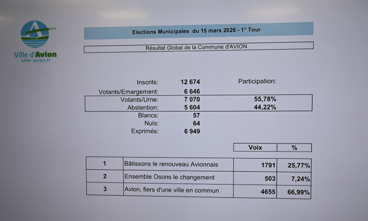 La liste " Avion, fiers d'une ville en commun" est arrivée en tête avec 66,99% .