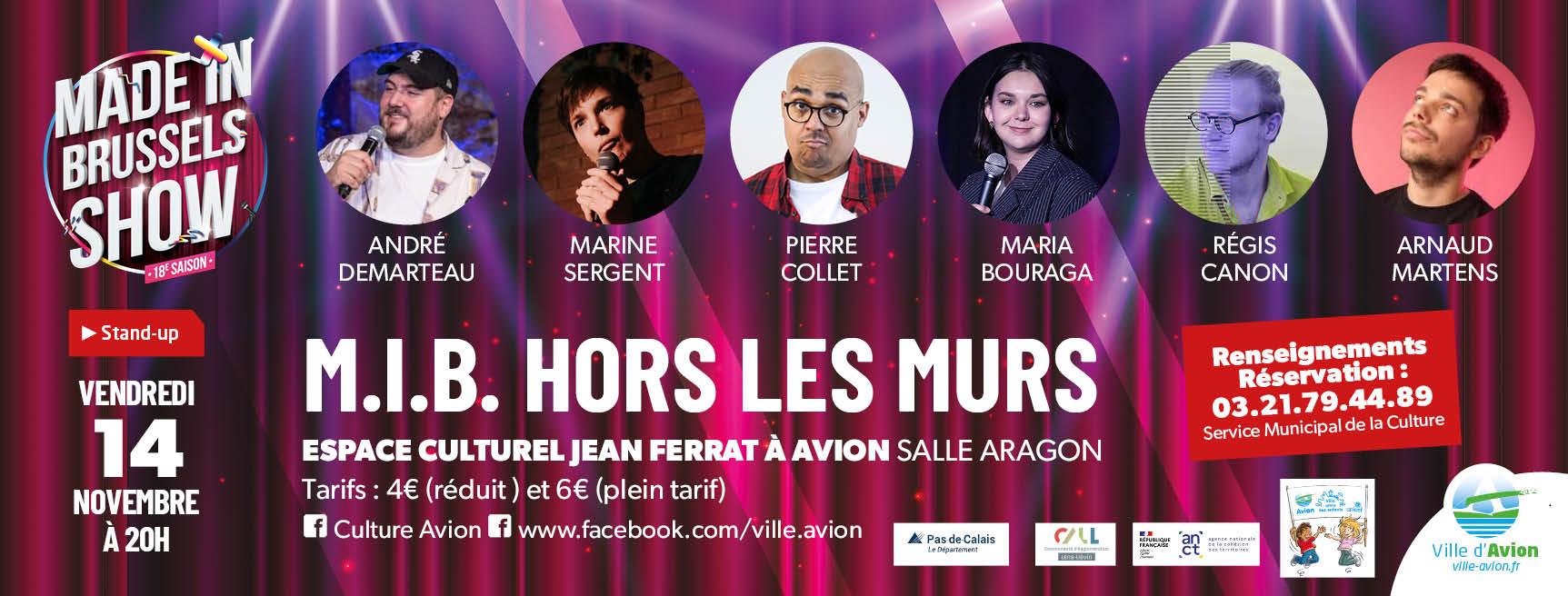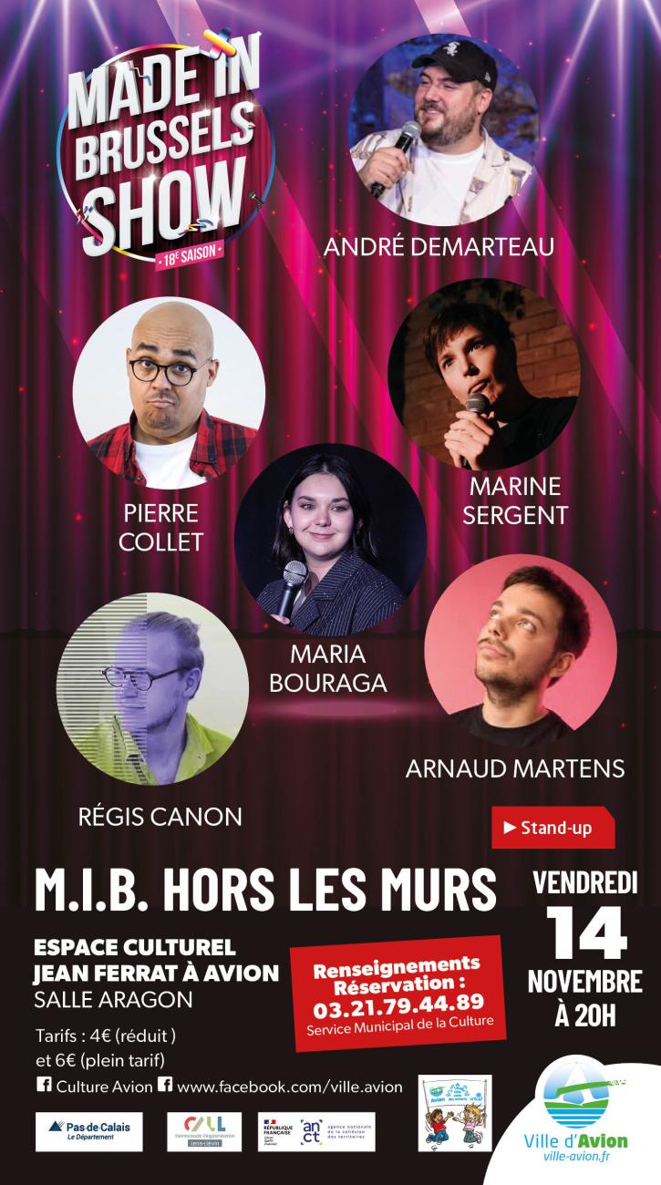 Le Made In Brussels Show est une scène d’expression libre qui donne leurs chances aux talents belges et français de se faire connaître. À venir découvrir pour la première fois à Avion dans la plus pure tradition du cabaret : un présentateur dynamique arraché au petit écran et jeté pour vous sur les planches, des d’artistes aux têtes bouillonnantes d’idées nouvelles et une envie débordante de jouer. Tout cela rassemblé dans un patchwork d’univers et d’humours correspondants à tous les goûts !